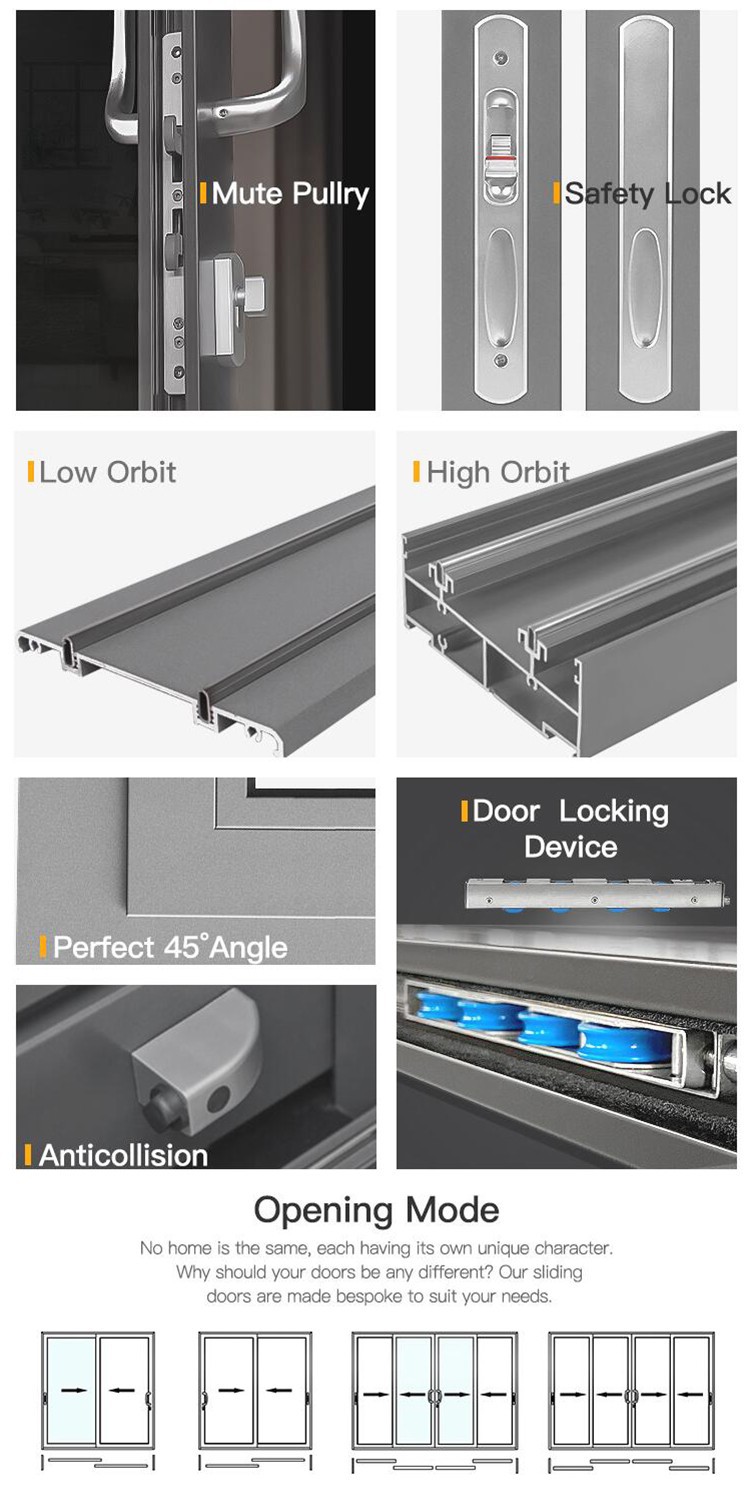 Kepelbagaian Gaya: Pintu teres aluminium tersedia dalam pelbagai gaya dan konfigurasi, termasuk reka bentuk panel tunggal dan berbilang panel. Anda juga boleh memilih daripada kemasan dan warna yang berbeza untuk dipadankan dengan estetika rumah anda.